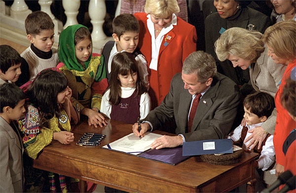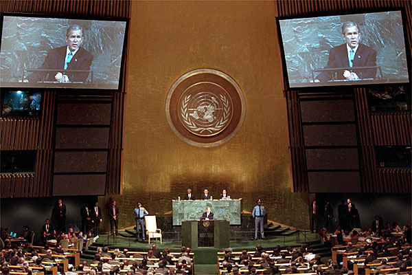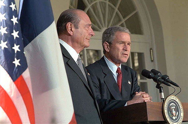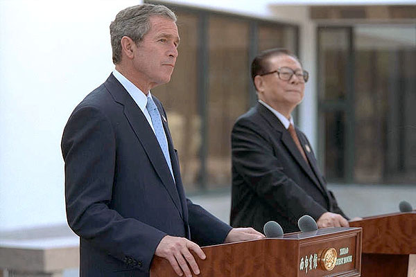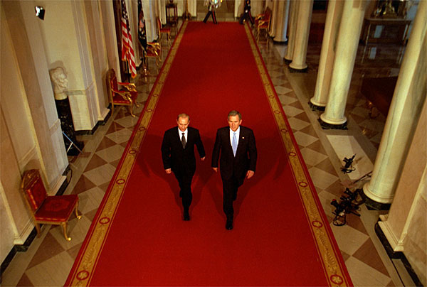 photo credit: Tina HagerPost-9/11, no lapel pin on Bush or Powell. |
