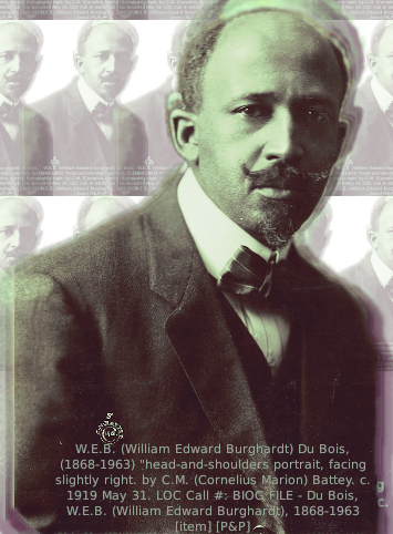 image credit: W.E.B. (William Edward Burghardt) Du Bois, 1868-1963 by C.M. Battey."Photo shows W.E.B. Du Bois, head-and-shoulders portrait, facing slightly right." c. 1919 May 31. Digital ID#: ppmsca 338818. Reproduction ID#: LC-DIG-ppmsca-38818. Repository: Library of Congress Prints and Photographs Division Washington, D.C. 20540.