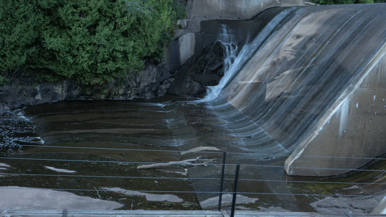 The Wisconsin starts at Lac Vieux Desert a few miles west of the Brule River headwaters. They are on either side of the St. Lawrence continental divide. This hydrological distinction is why the Fox drains into Green Bay and the Wisconsin into the Gulf of Mexico. To the lumber barons this meant that new lumber infrastructure had to be built for the Wisconsin river valley from Land O' Lakes to Wausau along the upper Wisconsin River. First, the river was dammed to create sorting ponds and power sawmills. The dams at Big Bull and Jenny Bull Falls became the towns of Wausau and Merrill. Bourchard's Station was transformed from a frontier tavern into Bradley's city of Tomahawk through the industrial capitalist magic of a boom company and a dam. Rhinelander's boom lake still powers the town paper mill. Grandfather Bull Falls, once a one-mile 89-foot drop in the river, is now a Wisconsin Public Service hydroelectric dam. According to the Wisconsin Valley Improvement Company there are twenty-five plants on the river which provide residential power for 300,000 customers.